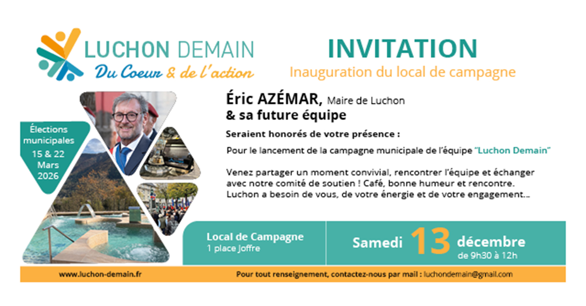 L’équipe Luchon Demain a le plaisir de vous annoncer l’inauguration de son local de campagne le...