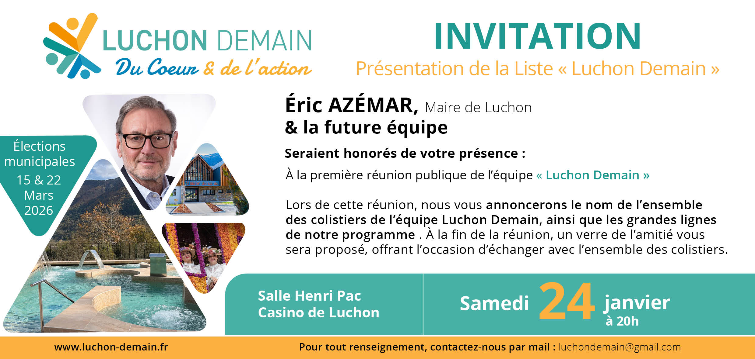 Lors de cette réunion, nous vous annoncerons le nom de l’ensemble des colistiers de l’équipe Luchon Demain, ainsi que les grandes lignes  de notre programme.